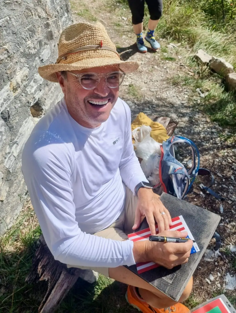 With is sister and son, Sandy owns Pilgrim Paths, a boutique travel business that specializes in custom, self-guided and group pilgrimage trekking adventures. When he’s not walking he enjoys yoga, sailing and piano. He spends time with his wife, Theresa Elliot, at their homes in Seattle, Washington, and Lucca, Italy.